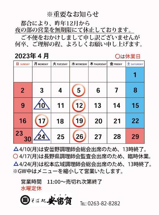 また、4月29日からゴールデンウィークが始まりますが、GW中はメニューを大幅に縮小して営業する予定です。
